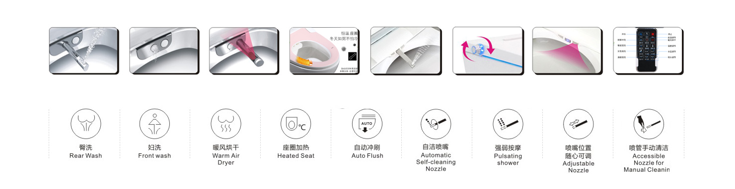 公司堅持不懈的自我完善,倡導產品以人為本、科技為先,服務優質高效。以生產研發高質量的產品為目標,繼續推動創新與發展,使產品的系列化、多樣化與結構的多元化,滿足不同客戶的差異化需求。 公司研制的智能馬桶豪潔、舒潔、美潔三大系列產品款式引領衛浴時尚潮流,造型多變,設計精美小巧,生動的展現現代藝術精髓,彰顯世上而富有情趣的生活空間是賓館、酒店、寫字樓及家庭裝潢的理想選擇。